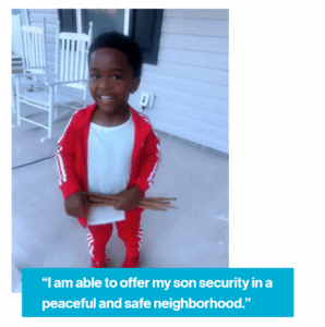 “I am able to offer my son security in a peaceful and safe neighborhood. I’m able to give him the freedom to run around freely,” she said with a smile. Now, every time they pull into their driveway, her son’s face lights up. “My son smiles every time we pull into our driveway — and that’s enough to be proud of.”